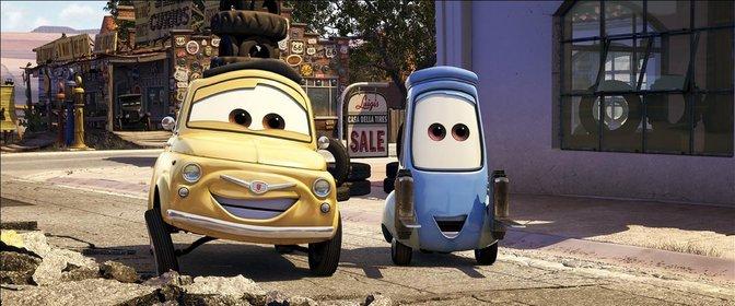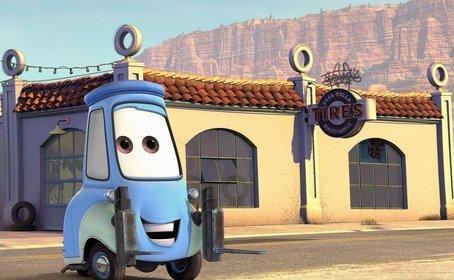 - Гвидо (Guido) — лучший друг и помощник Луиджи, мастер смены шин. Его голос в оригинале — Гвидо Куаро, на русском экране — Андрей Бархударов.
