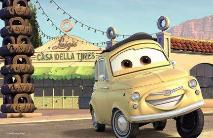 - Луиджи (Luigi) — энергичный итальянец, владелец шиномонтажа. В оригинале персонажа озвучил Тони Шалуб, а в российской версии — Дмитрий Хрусталёв.